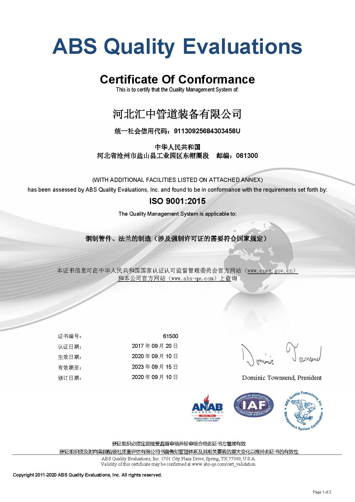 我公司通過(guò)美國(guó)船級(jí)社ABS ISO9001/14001/45001三體系認(rèn)證