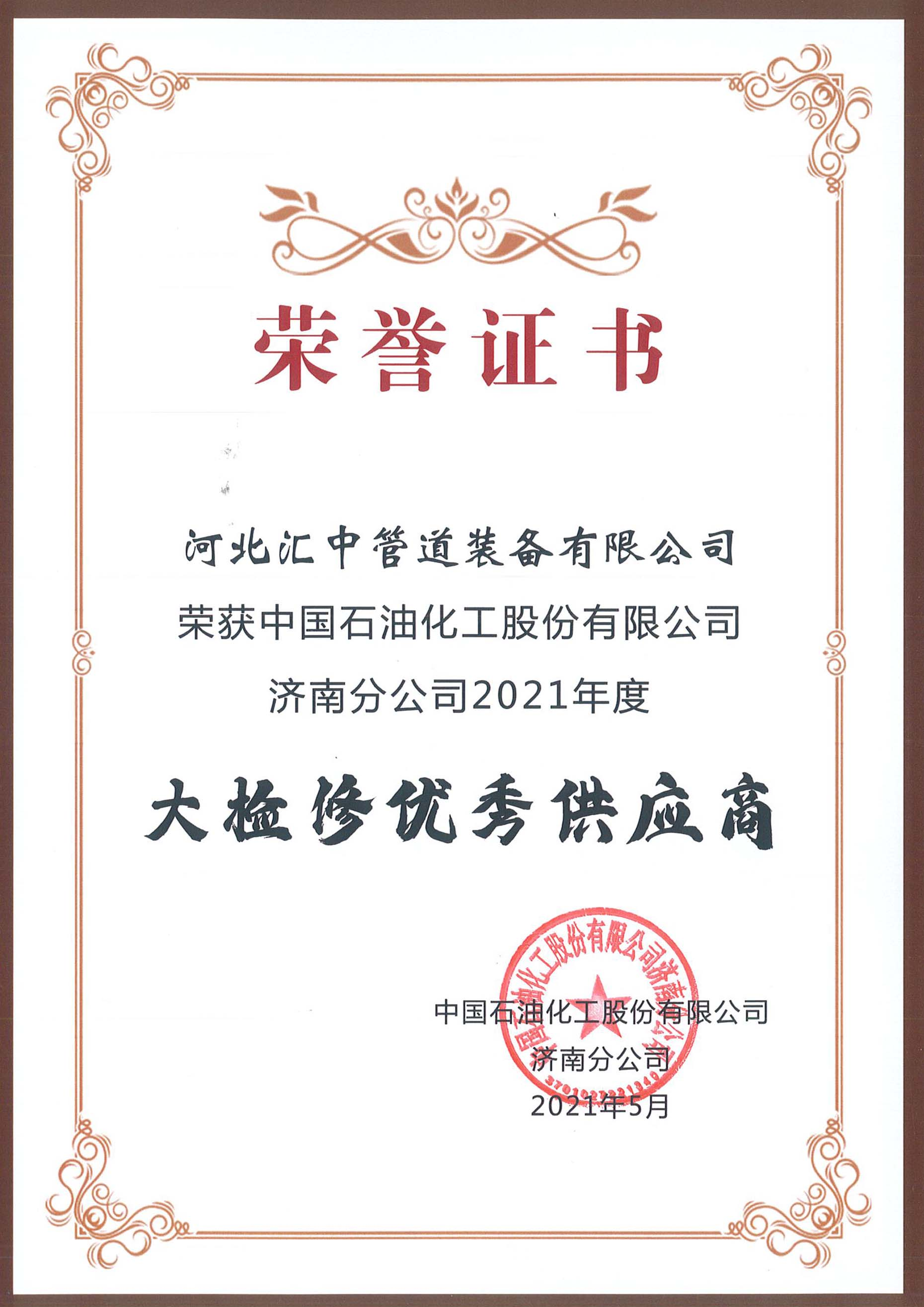 我公司獲評(píng)中石化濟(jì)南分公司“優(yōu)秀供應(yīng)商”